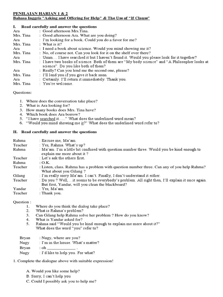 Contoh Soal Offering Beserta Jawaban - Contoh Soal Pilihan Ganda Offering Help Dan Jawabannya Dapatkan Contoh - Sejarah ham di dunia dan indonesia.. 01.11.2019 · temukan 100 contoh soal simple present tense dan jawaban serta materi terkait di labbahasainggris.co.id Be sure to read carefully all the directions in the test book. Ibu dan ayah sedang tidak ada di rumah saat ini. 01.11.2021 · 10 soal written expression dalam tes toefl lengkap beserta jawaban dan pembahasannya halo sahabat ibi, setelah sebelumnya admin mengulas tentang soal structure dalam tes toefl, kali ini admin akan Sebelumnya kita sudah belajar contoh dialog asking for help dan artinya, sekarang kita belajar mengerjakan contoh soal pilihan ganda asking for help and offering services.